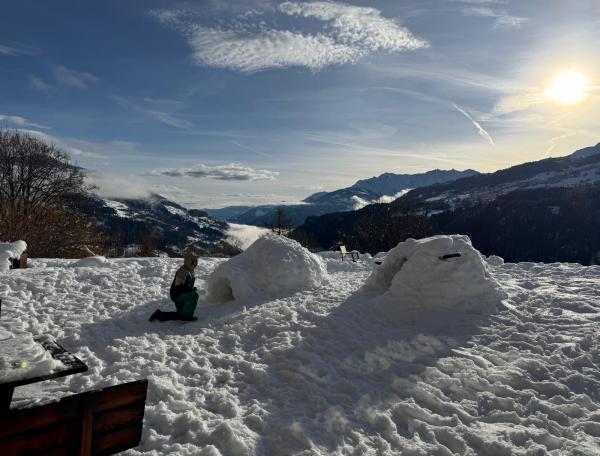 Net als de kerstweken waren de weken van de voorjaarsvakantie weer praktisch volbezet, met vooral gezinnen. De kinderen konden zich uitleven, met het bouwen van iglo’s in de tuin, sneeuwpoppen maken, sleeën en eindeloos buitenspelen. De meeste kinderen gingen op skiles bij de - voortreffelijke- skischool van Waltensburg. Met altijd op de vrijdagen onder grote belangstelling de afsluitende wedstrijd, met veel Nederlandse deelnemers, die ook vaak in de prijzen vielen (hulde!). Nieuwe gasten waren verrast door de kwaliteit van ons niet zo grote, maar wél- ook voor goede skiërs - interessante skigebied, dat ook nog eens heel kindvriendelijk is. In Zwitserland staat het te boek als een van de meest “Familienfreundliche” wintersportgebieden.